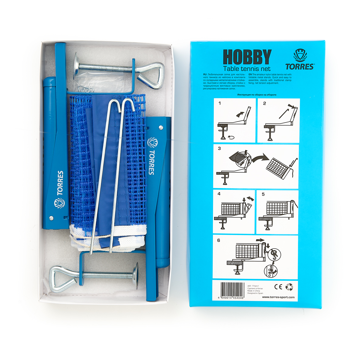 Полное наименование — Сетка для наст. тенниса TORRES Hobby, TT5017 в компл. с мет. стойками, синяя