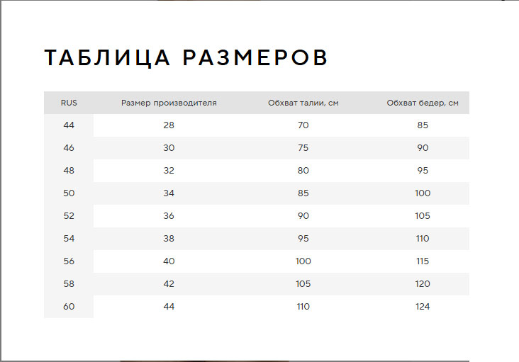 Размер 32 (европейский) соответствует российскому размеру 48.